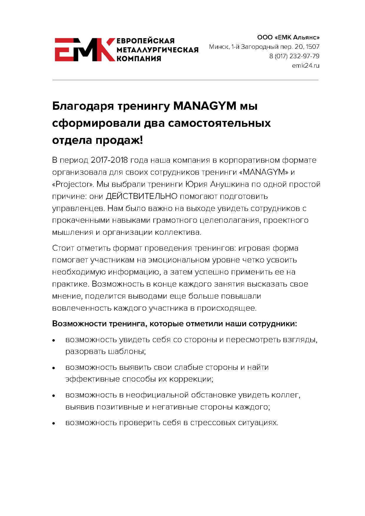 Читать подробнееManagym ™ - это GYM (качалка) для тех, кто начал карьеру как руководитель и понимает, что теперь ему нужны не только профессионализм и экспертность в предметной области, но и конкретные навыки менеджера.